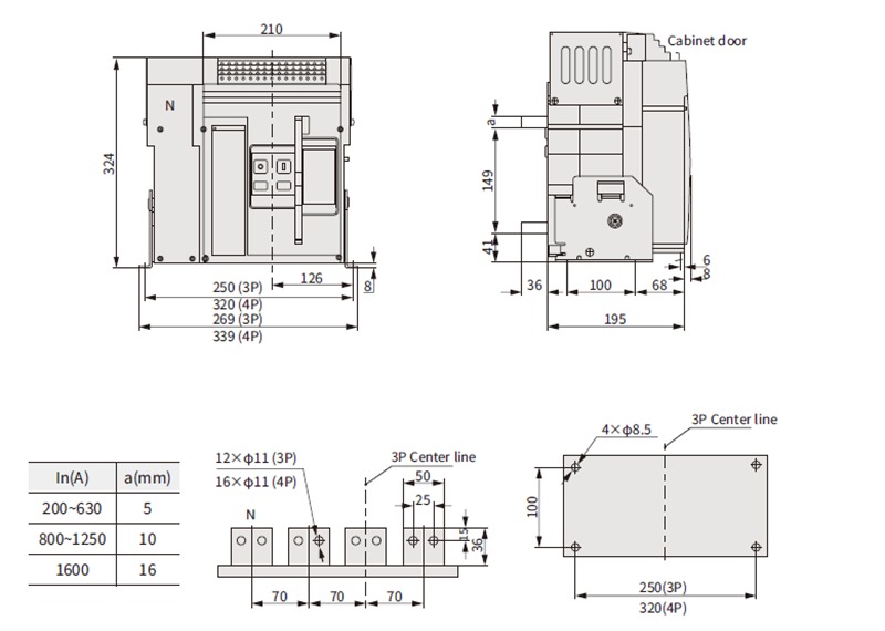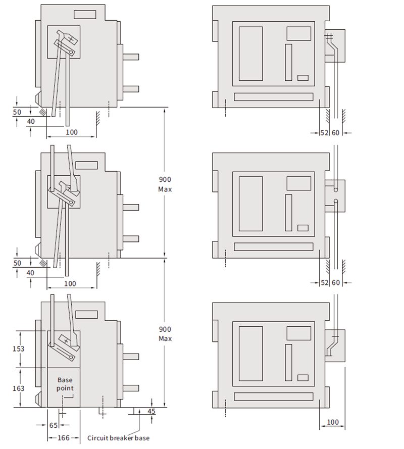 2. The rated current of the circuit breaker is divided into 1600A, 2000A, 3200A, 4000A, 5000A(capacity increased to 6300A).